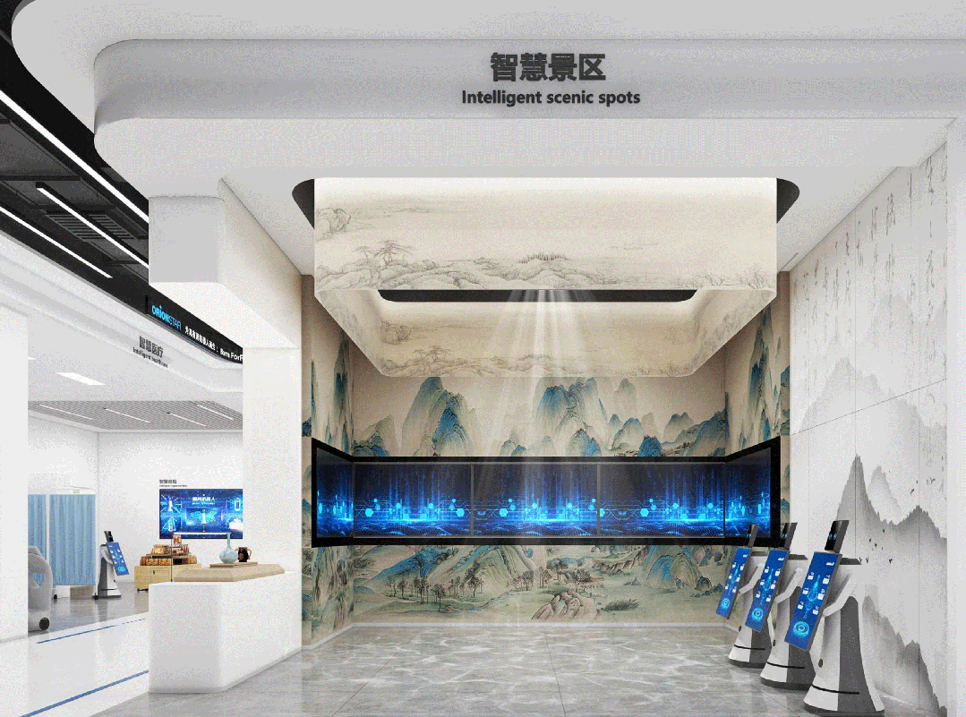 机械人成品仓库,以冷色调的灯带勾勒空间轮廓,建立物等体例划分各功能区,正在聪慧政务,⑤ 荣誉满载:荣获 30 项国度及行业设想粉饰拆修项,设想师通过猎户星空AI手艺取描画庐山和鄱阳湖元素的千里山河图连系,休闲或睡眠等分歧的场景模式,![]()